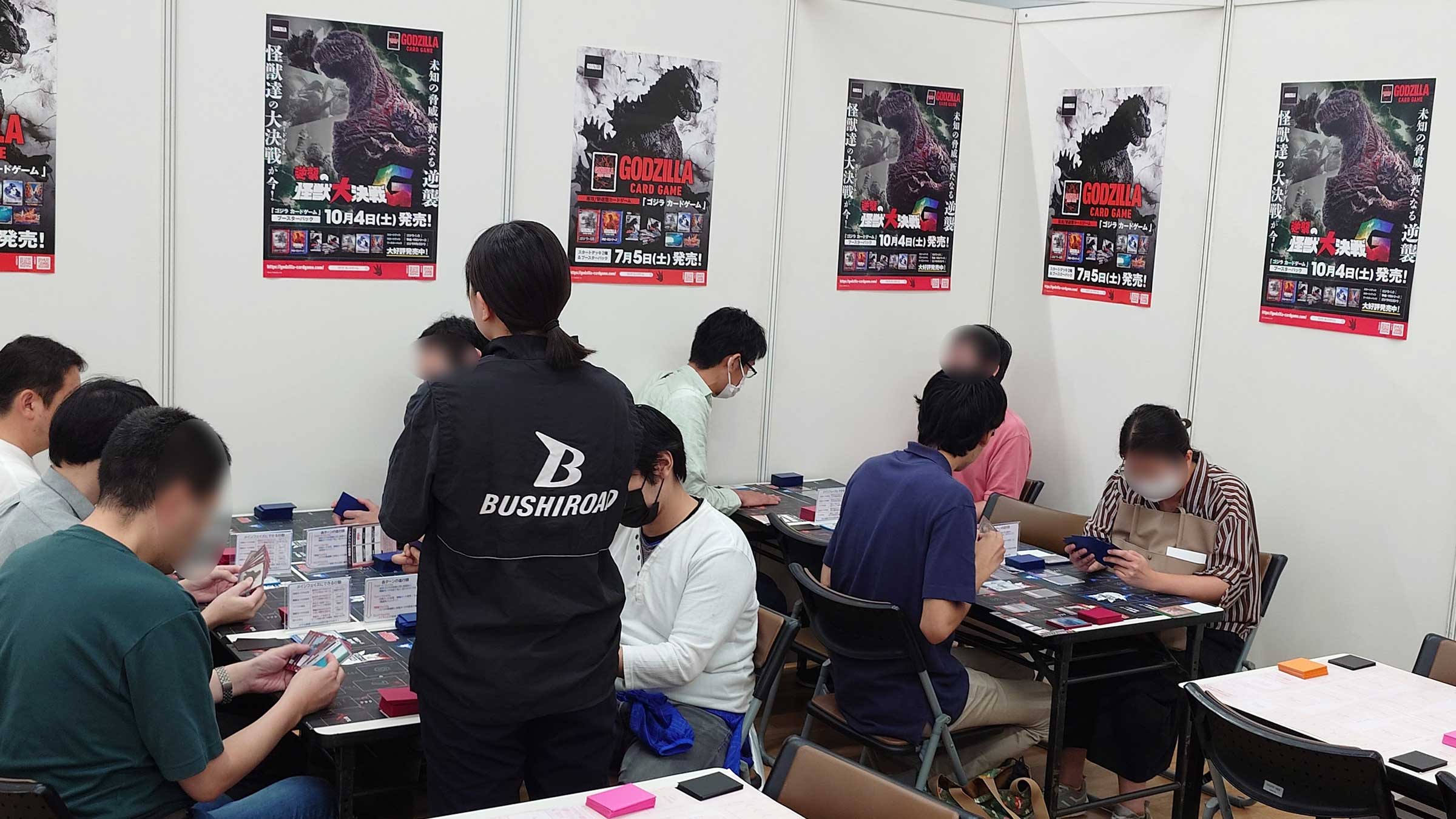 ブシロード様のブースでは、2025年7月に発売されたばかりの最新TCG「ゴジラ カードゲーム」の体験会も実施。たくさんのお客様を集めておりました。