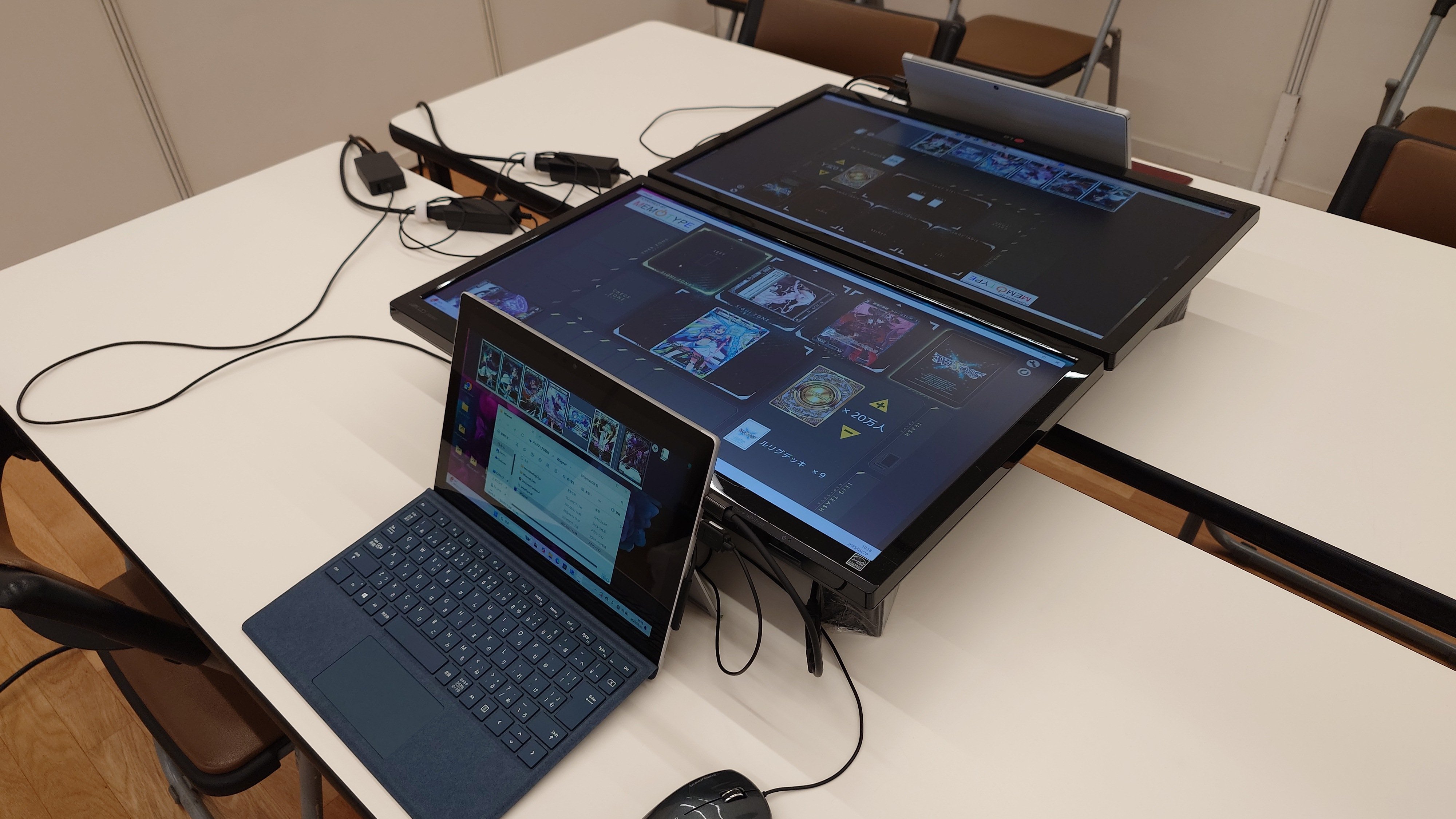 遠隔でのTCG対戦が可能になるソフトウェア「バーチャルプレイマット」の展示や、TCG向けのユーティリティアプリなどを紹介していました。
