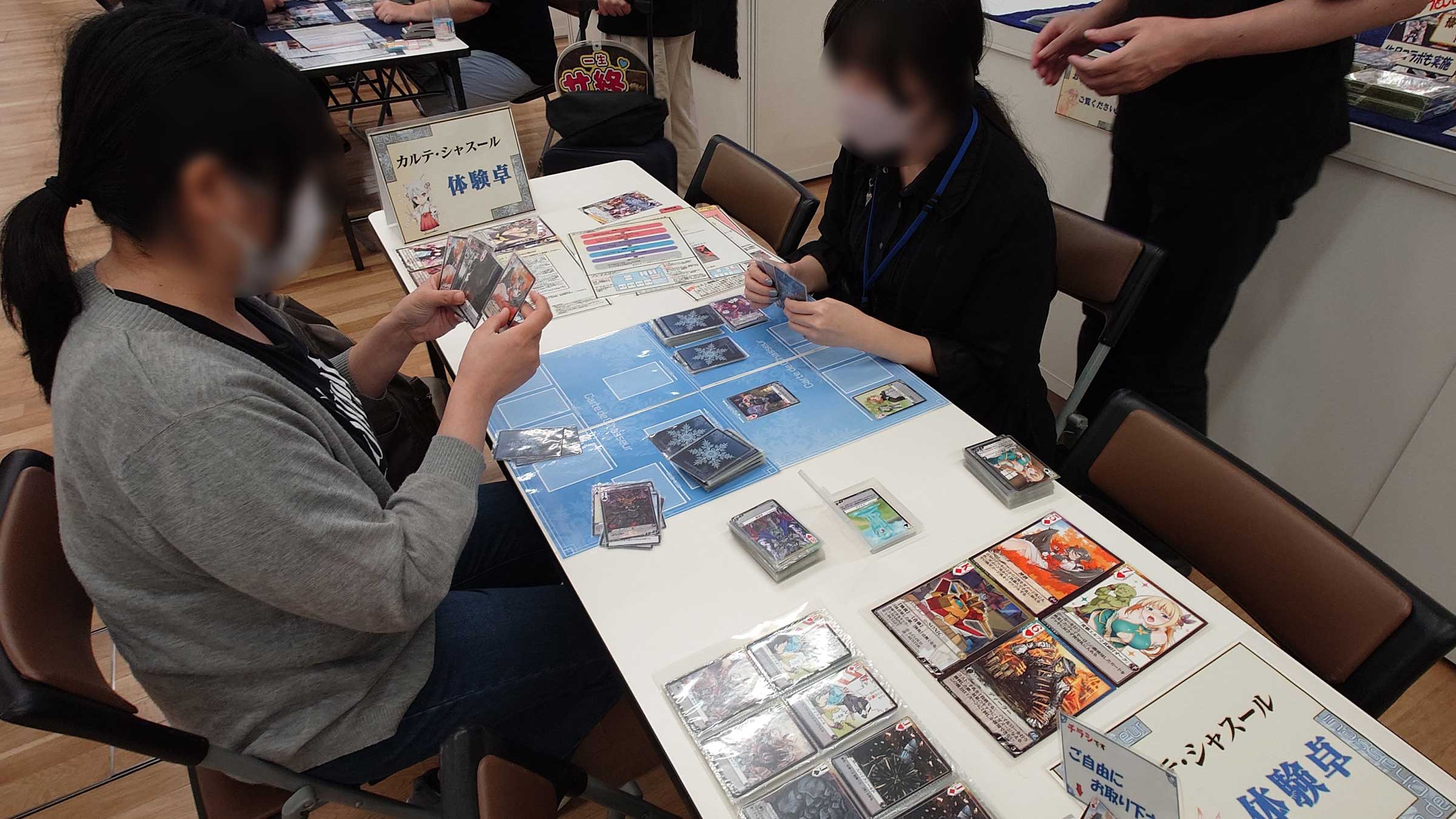 トランプの要素を織り交ぜた新感覚TCG「カルテ・シャスール」の体験と販売を行っており、TCGフェス限定の特別割引も実施していました。