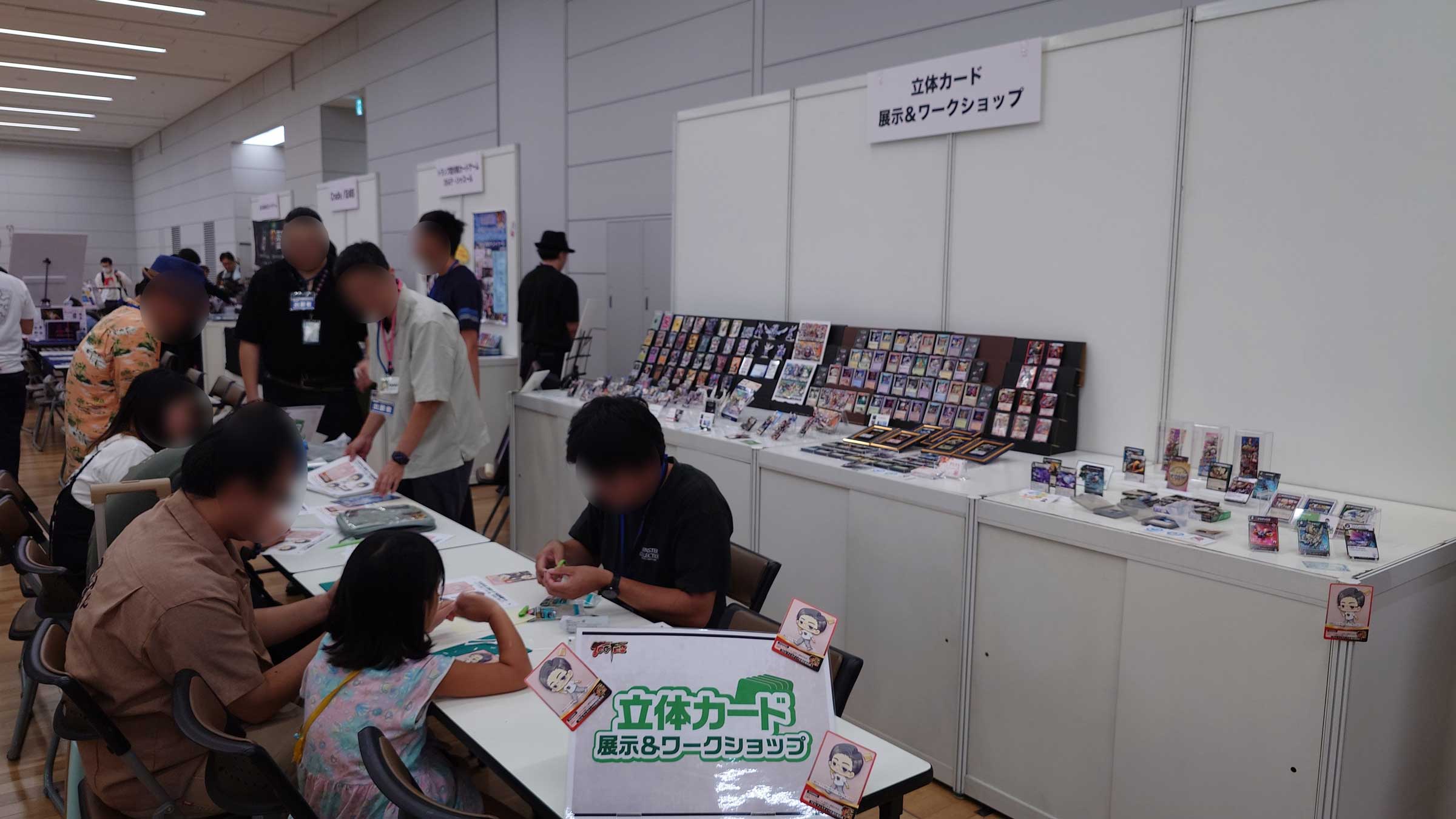 TCGフェスティバルには初開催の2018年からご協力いただいている立体カード展示&ワークショップ。展示された数々の作品は、まさにアート作品と呼ぶにふさわしい出来ばえで、観た人からは感嘆の声が漏れていました。オリジナルのカードを使った立体カード制作体験も好評で、親御様と一緒にお子様が体験されている様子も見られました。
