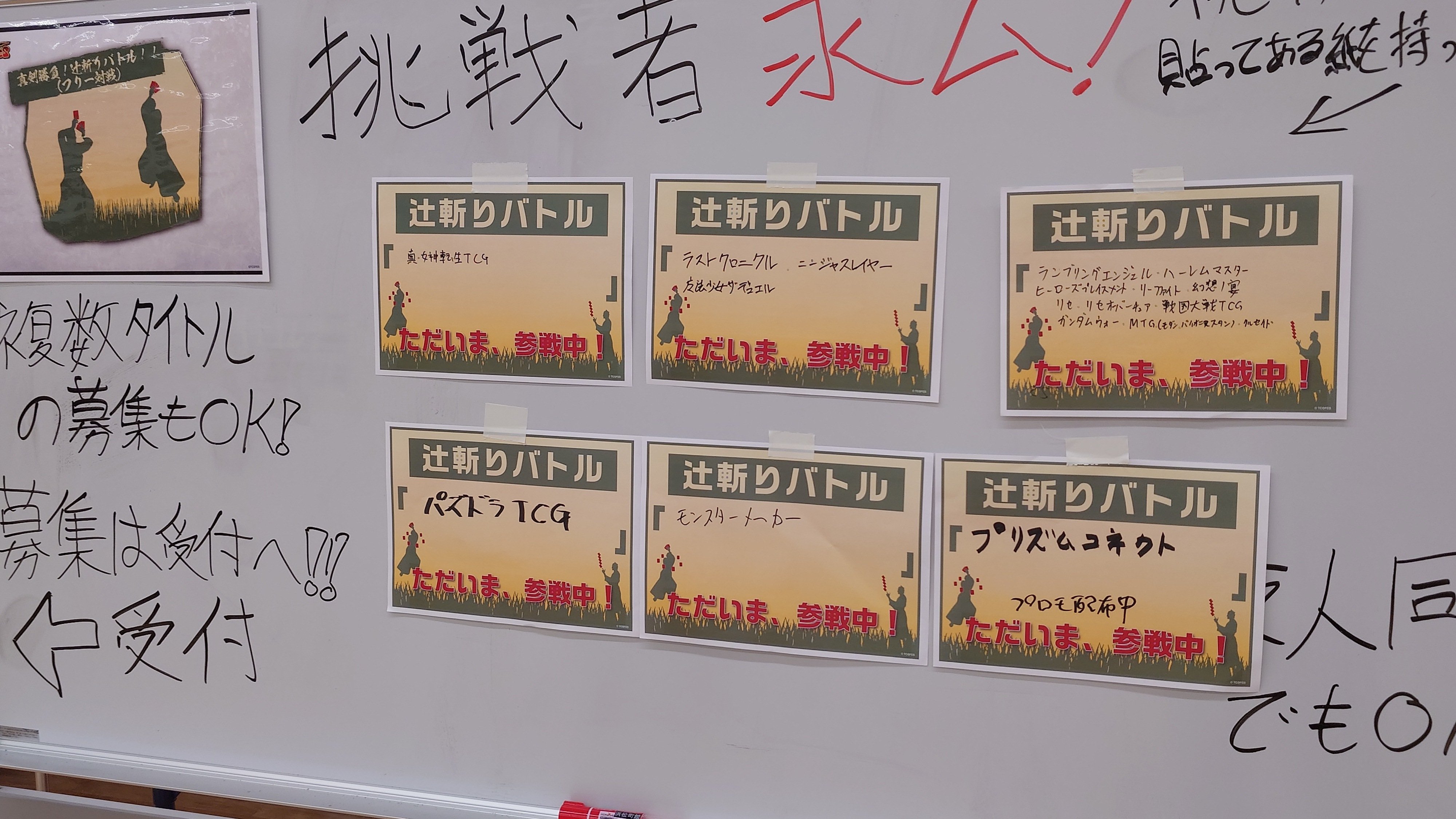 開催期間中は、ホワイトボードで対戦者募集のTCGタイトルをお知らせしていたほか、公式Xでもご案内していました。